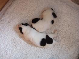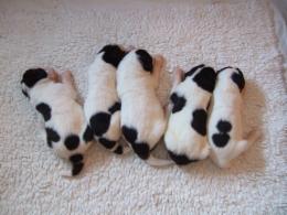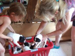Am letzten Samstag ist leider eine kleine Hündin ohne erkennbaren Grund gestorben, sehr schade. Gott sei Dank ist kein weiterer Welpe gefolgt und so vermuten wir, dass sie erdrückt/erstickt wurde... nun sind es also 2 Rüden und nur noch 5 Hündinnen.